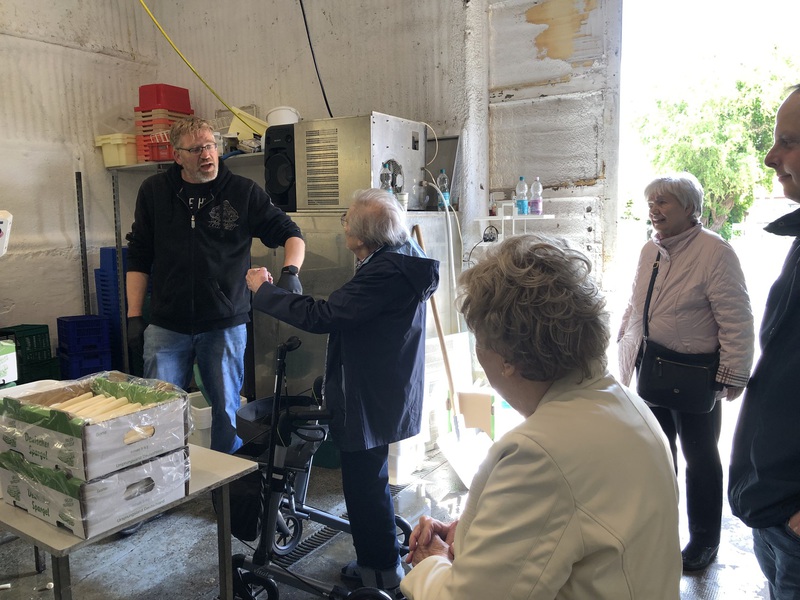 Hofbesichtigung. Zum Abschluss wurde unseren Tagesgästen 15 kg geschälter Spargel geschenkt, der in der Tagespflege zubereitet wurde und allen vorzüglich geschmeckt hat. Wir danken Carsten Lahmann