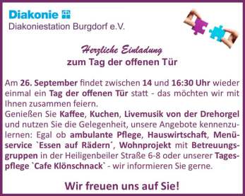 Gute Stimmung, Musik von der Drehorgel, Kaffee und Kuchen und dazu die Möglichkeit, sich über die vielen Angebote der Diakoniestation Burgdorf e.V. zu informieren - das war der Tag der offenen Tür am Freitag.